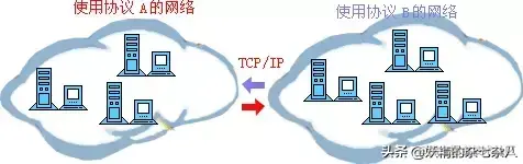 计算机网络协议同我们的语言一样,多种多样。而ARPA公司与1977年到1979年推出了一种名为ARPANET的网络协议受到了广泛的热捧,其中最主要的原因就是它推出了人尽皆知的TCP/IP标准网络协议。目前TCP/IP协议已经成为Internet中的“通用语言”,下图为不同计算机群之间利用TCP/IP进行通信的示意图。