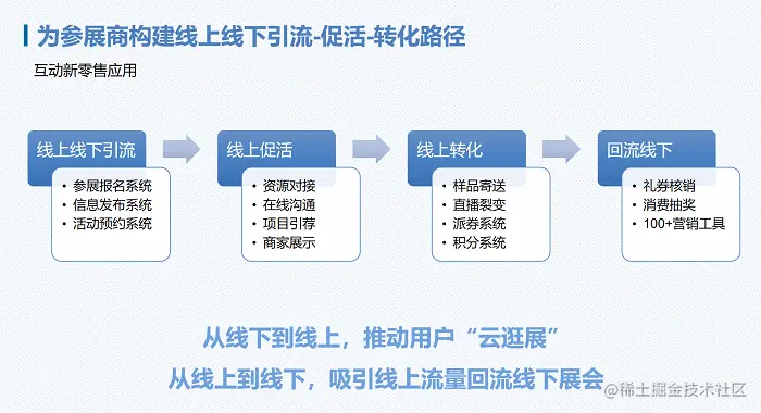 随着互联网技术的发展和不断变革,会展行业也不断面临数字化浪潮的冲击,用户对于更会多元化的媒体呈现方式、更便捷的参展流程等需求也对展会质量提出了新的标准。因此,会展行业需要拥抱数字化技术和培养数字化思维,才能拥抱未来,拥有未来。“数字会展”也由此诞生。什么是“数字会展”?“数字会展”是基于数字化基础构建的新型会展生态圈,利用云计算、大数据等数字化技术形成数字化生态工具,并基于平台形成全方位立体化的新型展览和服务模式,这也是对实体会展模式的一种有效补充。