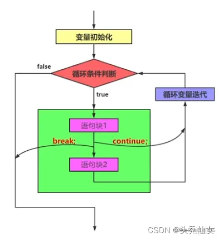 continue语句用在循环语句体中,用于终止某次循环过程,即跳过循环体中尚未执行的语句,接着进行下一次是否执行循环的判定。