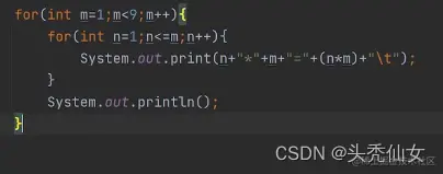简单的嵌套循环就实现了九九乘法表。