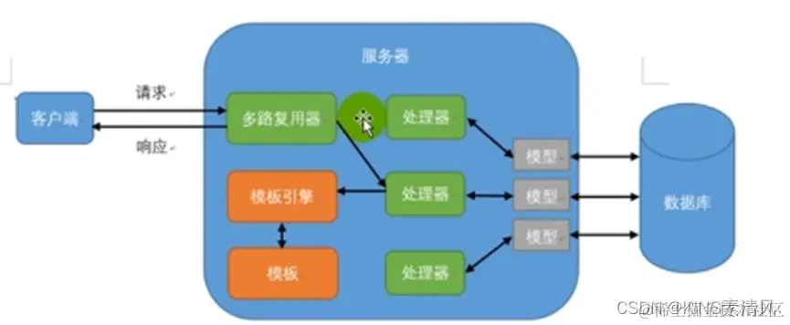 多路复用器接收到用户的请求之后根据请求的URL来判断使用哪个处理器处理请求,然后就会重定向到对应的处理器处理请求。