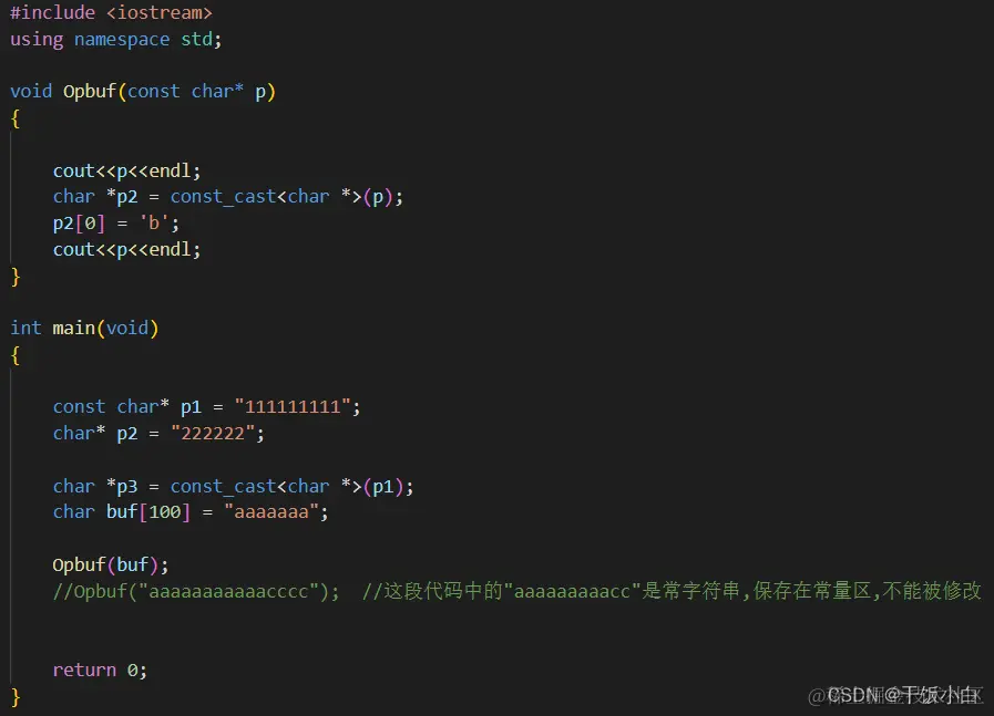 如果需要去const属性进行修改,首先要保证这段内存能够被修改