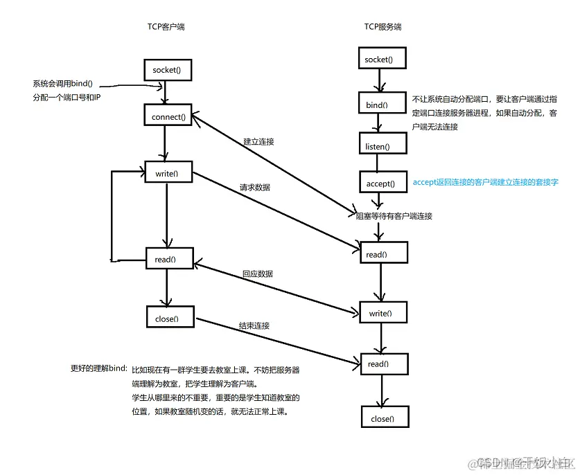 socket模型创建流程图(TCP通信流程/CS模型流程图)
