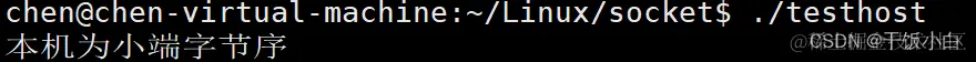 #include <stdio.h> #include <arpa/inet.h> //先定义一个联合体 union { int number; char c; }test; //为什么用这个联合体可以测试呢? /* 联合体:所有变量共用一块内存 按最大的成员变量进行申请内存 每一时刻只能有一个成员 对于test: siezof(test) = 4 如果用 c = 1 type ==> 每次都能够取到最低位置 */ int main(void) { test.number = 0x12345678; if(test.c == 0x12) //高位存储在内存的低地址上 { printf("本机为大端字节序\n"); } else { printf("本机为小端字节序\n"); } return 0; }