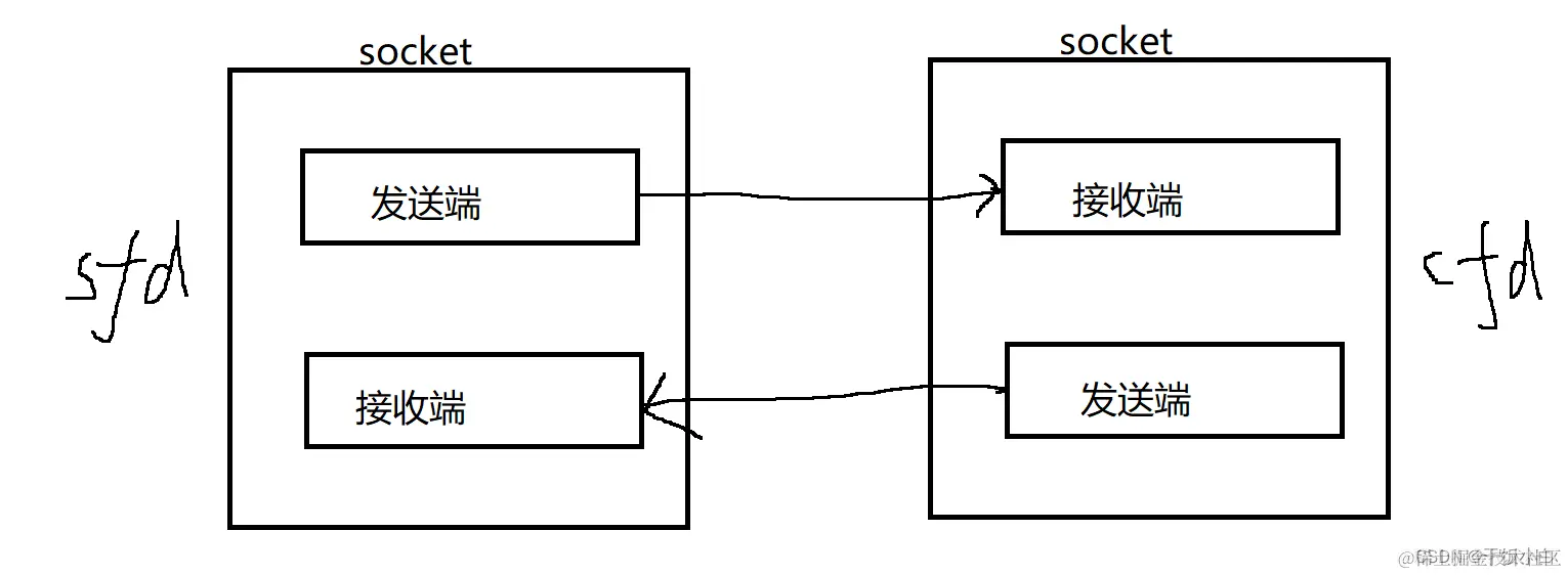 在网络中套接字一定是成对出现的。