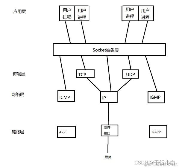 TCP/IP协议最早在BSD UNIX上实现,为TCP/IP协议设计的应用层编程接口称为socket API。