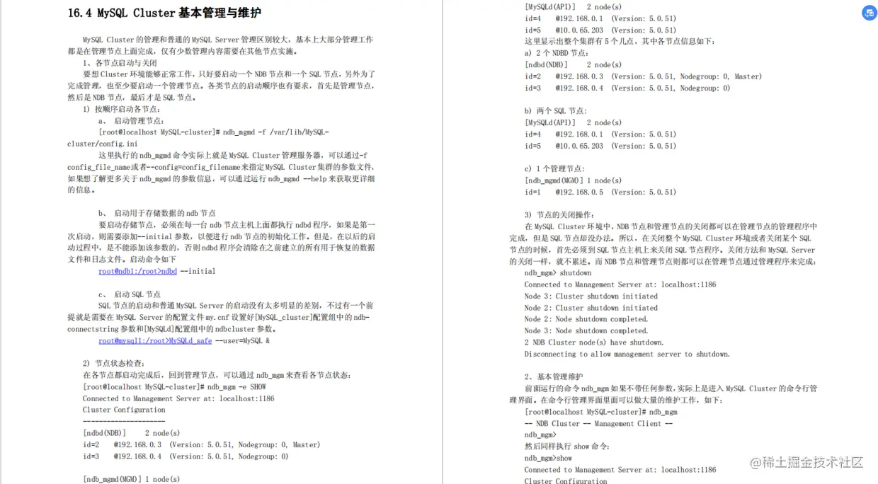 MySQL Cluster基本管理与维护