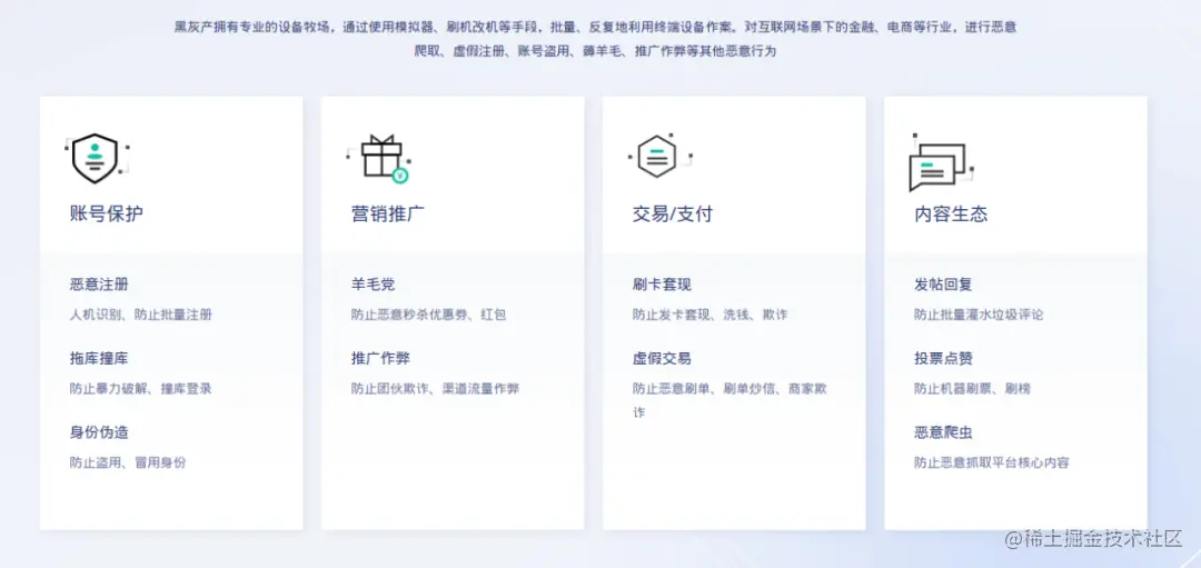 同时,通过云+端模式,补足信息采集短板,显著增强设备攻防对抗的时效性和安全性,综合各行业的攻防经验和风险数据沉淀,当新的攻击方式和特征出现时,设备指纹能够更快的感知应对和准确识别。