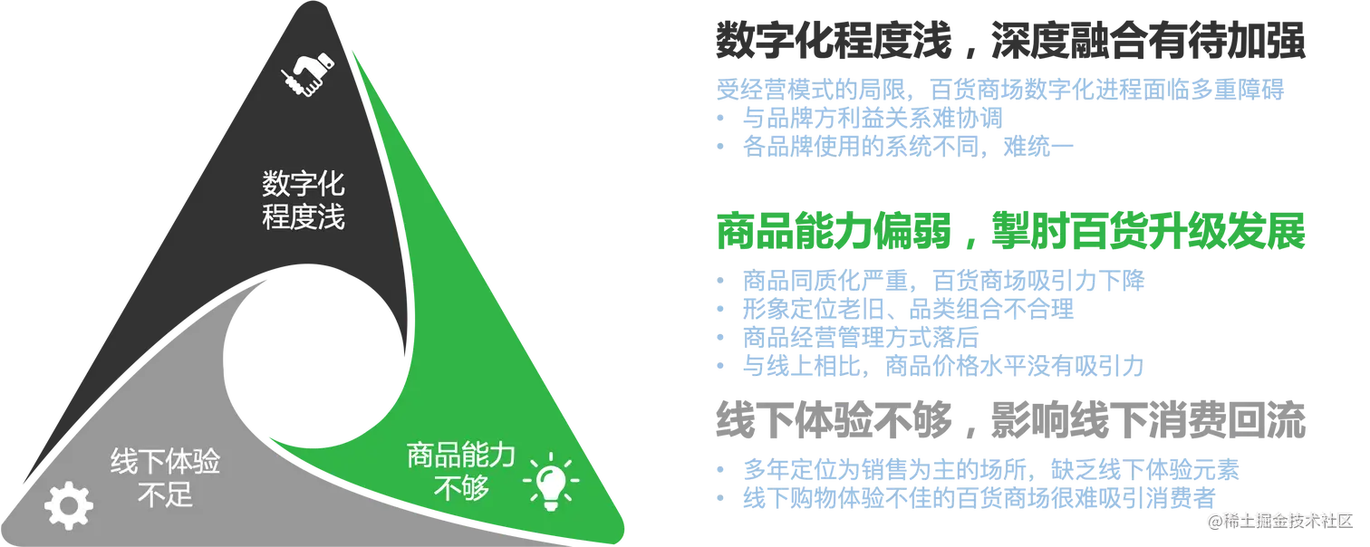 二、百货商场的三大关键问题:数字化程度浅+商品能力不够+线下体验不足