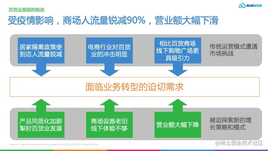 受疫情影响,多家百货上市公司盈利下降,百货经营面临挑战。 百货业态是历史最悠久的零售业态之一,但近年来,受电商和购物中心冲击明显,发展疲软。近两年,百货业态又遭受新冠肺炎疫情进一步冲击,据公开资料统计的43家百货上市企业2021上半年业绩,营收总额达1075.52亿元,比去年同期的1118.78亿元下跌3.87%,但平均增速达15.68%。Ruwise团队通过网上能够获得的已有信息总结出百货业在疫情期间面临的六大挑战和三大关键问题: