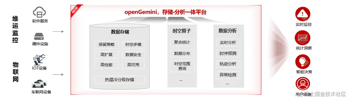 openGemini兼容InfluxDB、Prometheus生态API,具有高性能、高扩展、存储-分析一体化、运维成本低、高数据压缩率等5大优势。
