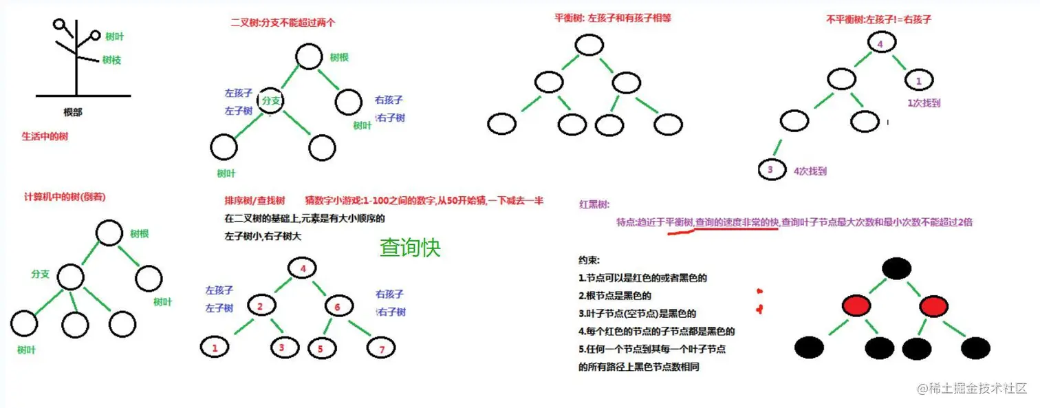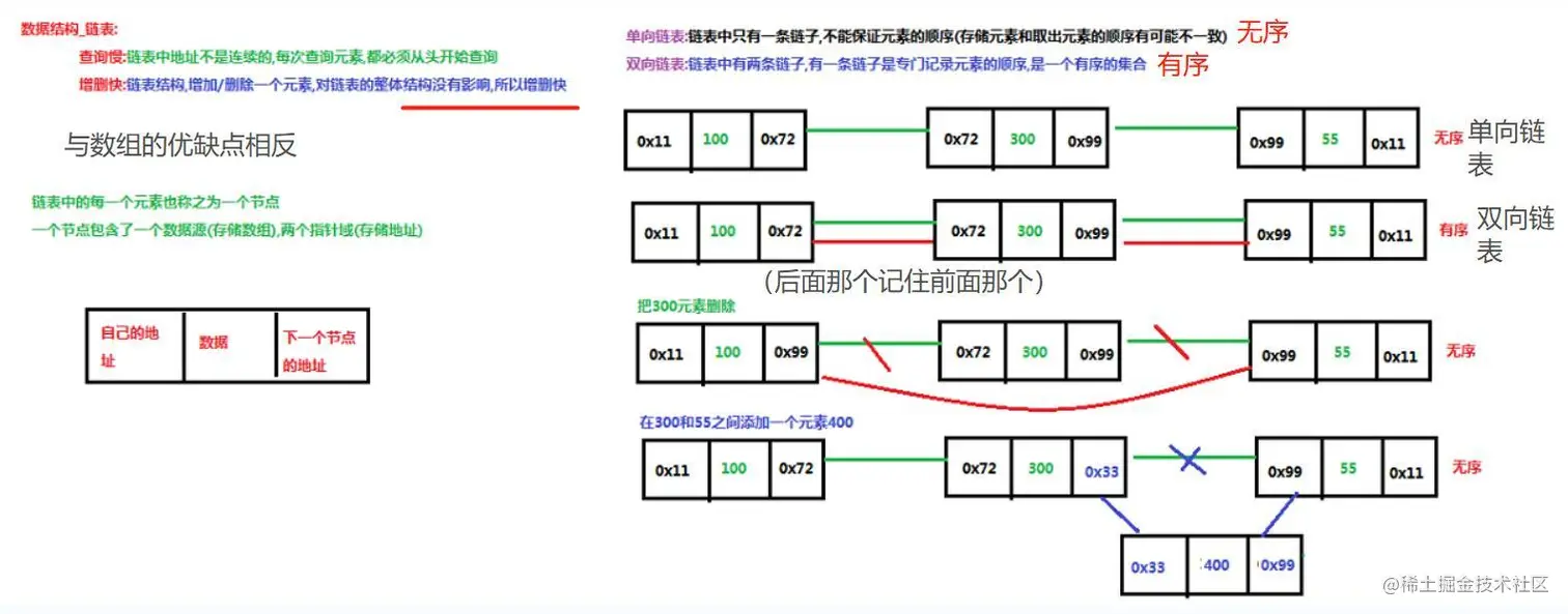 数据结构:栈、队列、数组、链表、红黑树 互联网架构小马 2022-08-30 53 阅读1分钟 一、栈、队列 二、数组 ArrayList的底层是数组,实现不是同步的,多线程(快) Vector了解即可,是单线程,底层也是数组 三、链表 LinkedList集合的底层是双向链表 四、红黑树(二叉查找树) 还介绍了二叉树、排序树(查找树)、平衡树、不平衡树