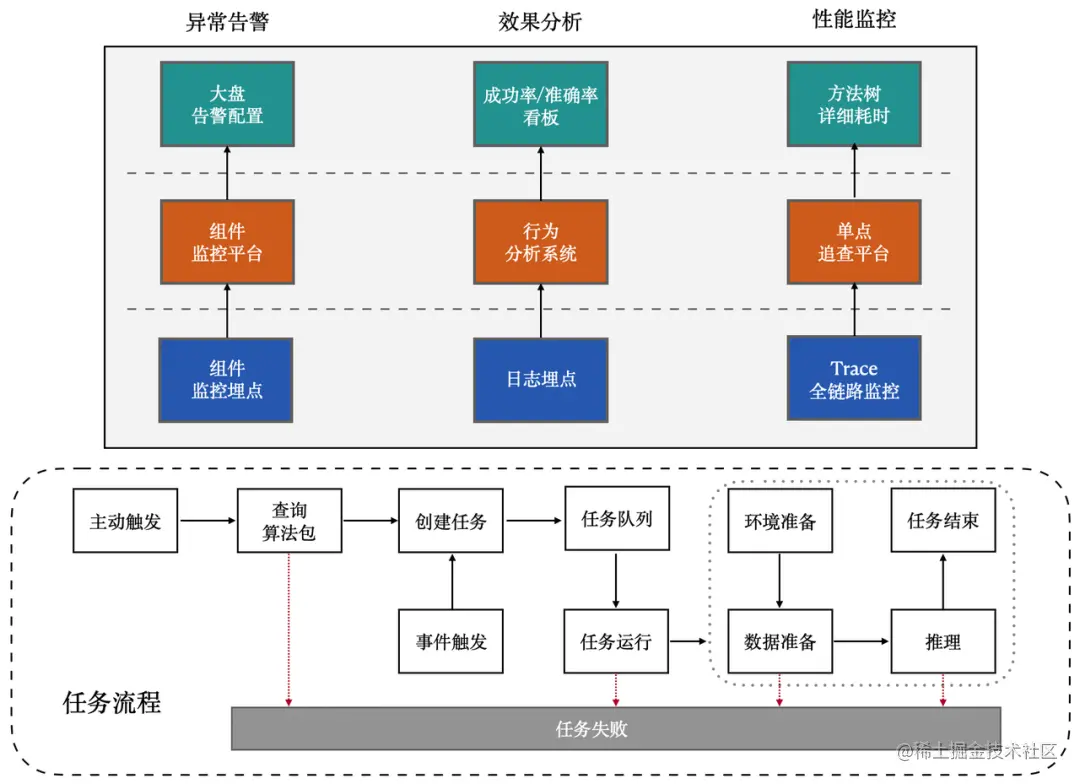 - 在行为分析系统上,埋点算法包运行结果和行为,通过 报表/看板 展示算法包运行成功率、模型推理准确度等信息。