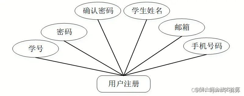 用户注册,在用户注册页面通过填写学号,密码,确认密码,学生姓名,邮箱,手机号码等信息完成用户注册