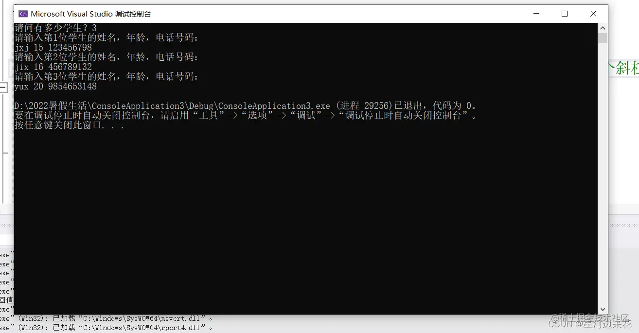printf("请输入第%d位学生的姓名,年龄,电话号码:\n", i + 1);