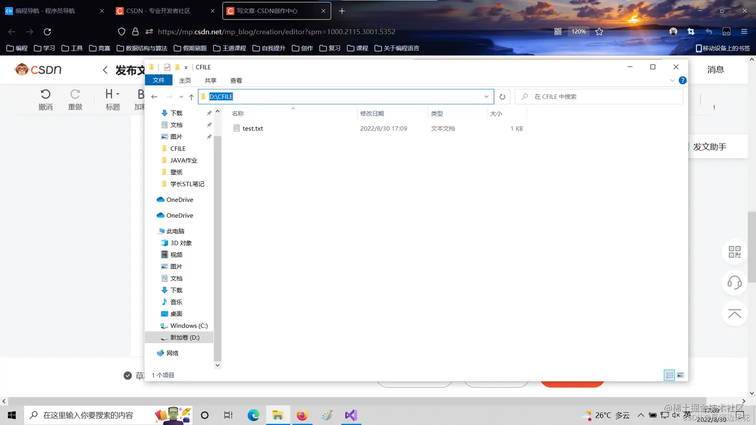 首先在D盘下的CFILE文件夹下创建一个test.txt文件