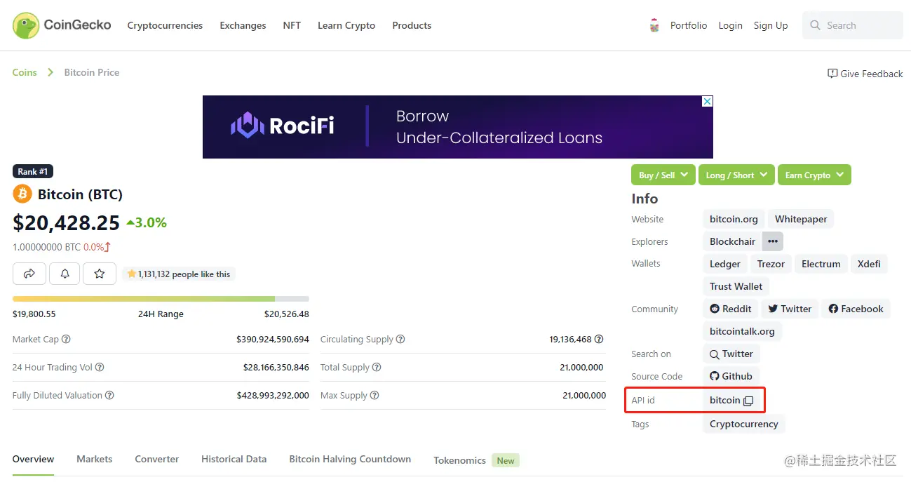- 进入代币的详情页,获取目标代币的API id