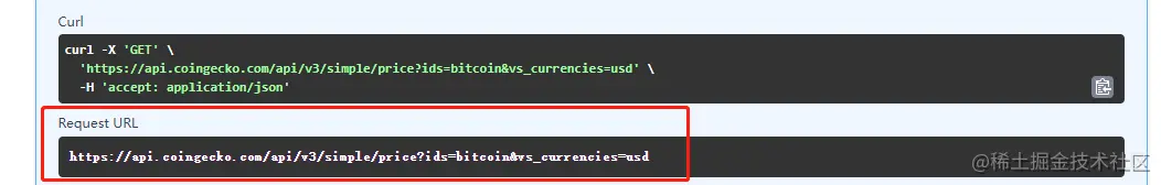 其中ids是上一步查到的API id,vs_currencies是对手价格,查询美元价格时输入usd。