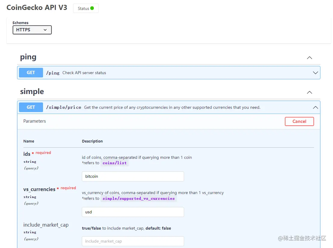 在CoinGecko的API文档页可以测试接口是否能够正确返回数据。