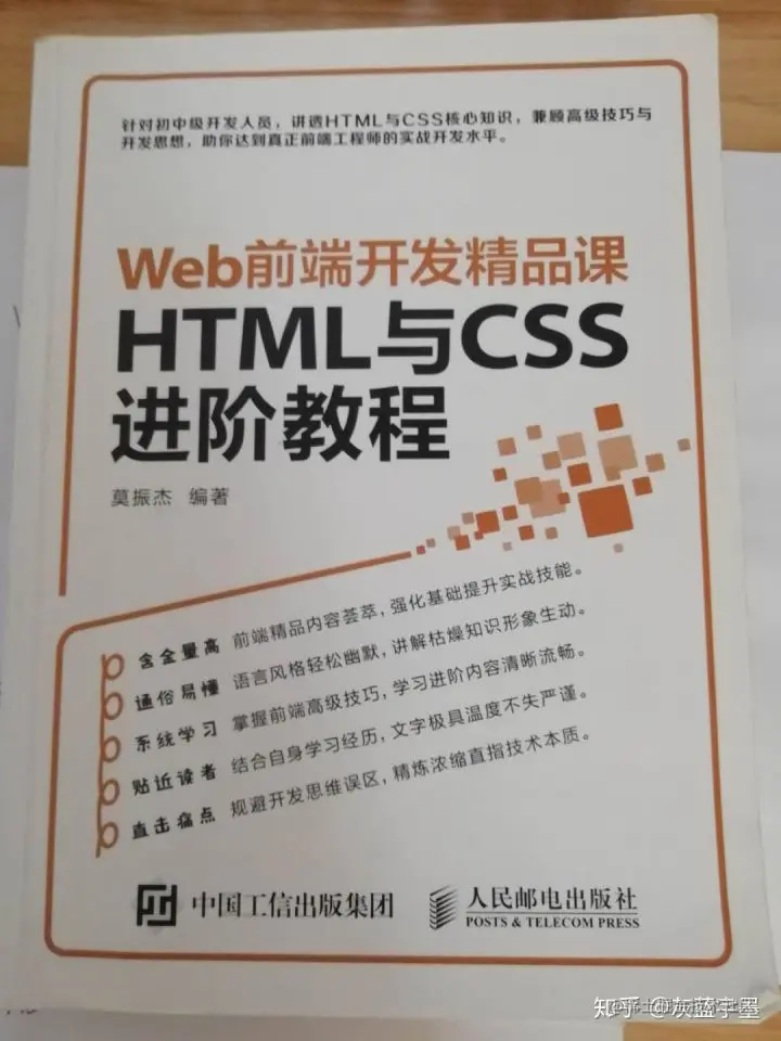 首先推荐的是莫振杰的HTML与CSS进阶教程,它可以说是前端小白的经典入门书籍,没有之一。