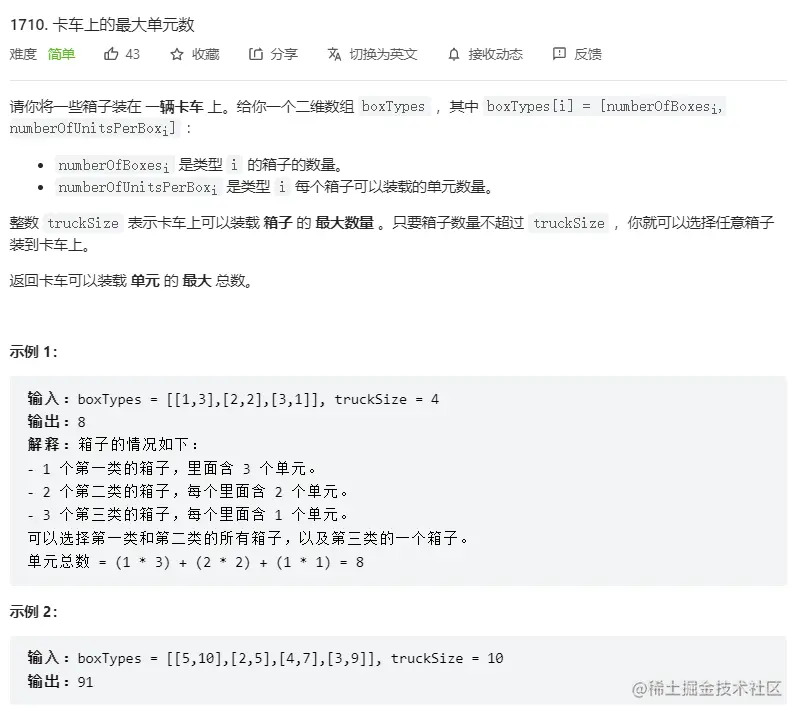 3. LeetCode 1710. 卡车上的最大单元数
