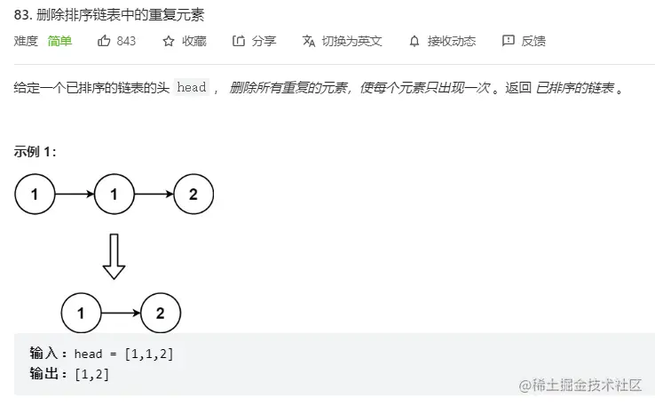 LeetCode 83. 删除排序链表中的重复元素