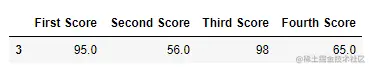 'Fourth Score':[np.nan, np.nan, np.nan, 65]}
