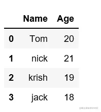 data = {'Name':['Tom', 'nick', 'krish', 'jack'],