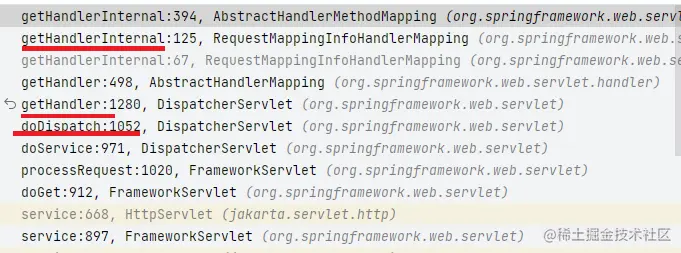 该方法就是在 doDispatcher()中进行调用的,也就是对应流程中的 第一步:进行映射找到合适的Handler
