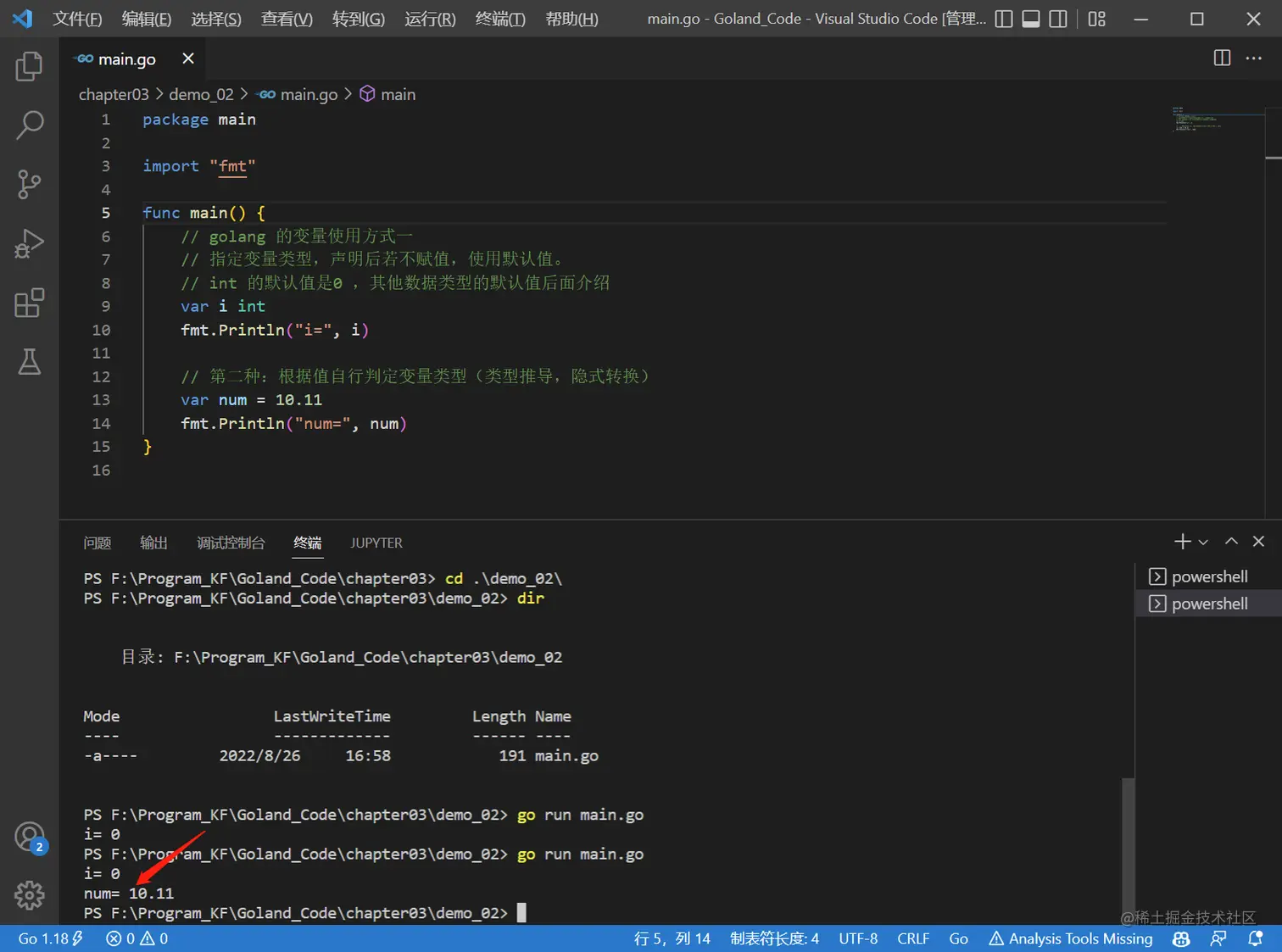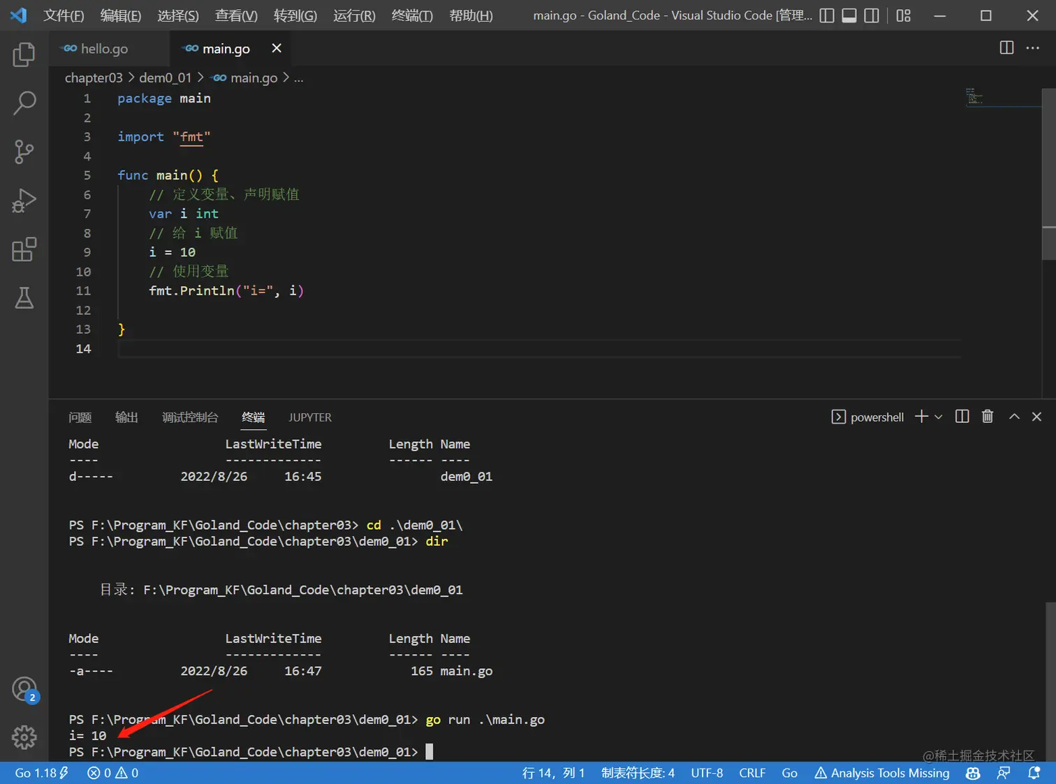 // golang 的变量使用方式一