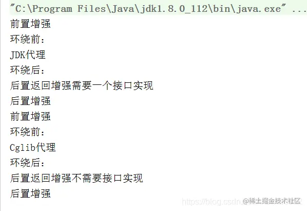 CGLIB代理:目标类没有实现接口,其是以动态生成目标类的子类来实现的,目标类不能被final修饰(不能继承);
