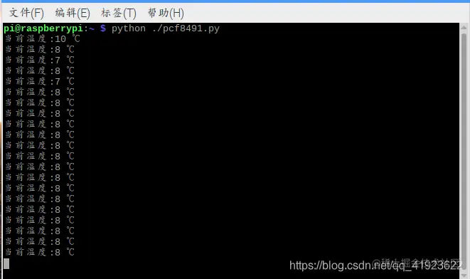 print("当前温度:%1.0f ℃ " %(value)) ##打印数据