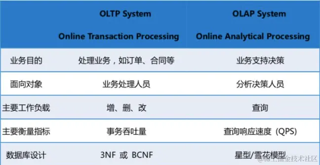 两者简单的区别为OLTP是做事务处理,OLAP是做分析处理。