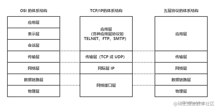 (4)**获取MAC地址:**当浏览器得到 IP 地址后,数据传输还需要知道目的主机 MAC 地址,因为应用层下发数据给传输层,TCP 协议会指定源端口号和目的端口号,然后下发给网络层。网络层会将本机地址作为源地址,获取的 IP 地址作为目的地址。然后将下发给数据链路层,数据链路层的发送需要加入通信双方的 MAC 地址,本机的 MAC 地址作为源 MAC 地址,目的 MAC 地址需要分情况处理。通过将 IP 地址与本机的子网掩码相与,可以判断是否与请求主机在同一个子网里,如果在同一个子网里,可以使用 APR 协议获取到目的主机的 MAC 地址,如果不在一个子网里,那么请求应该转发给网关,由它代为转发,此时同样可以通过 ARP 协议来获取网关的 MAC 地址,此时目的主机的 MAC 地址应该为网关的地址。