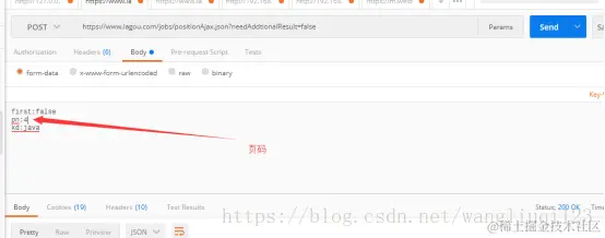 参数的含义:大概也能看出来,pn是页码,kd 是搜索关键字:keyword。First没看出来,多访问几个页面发现也是False。所以我们直接写死。