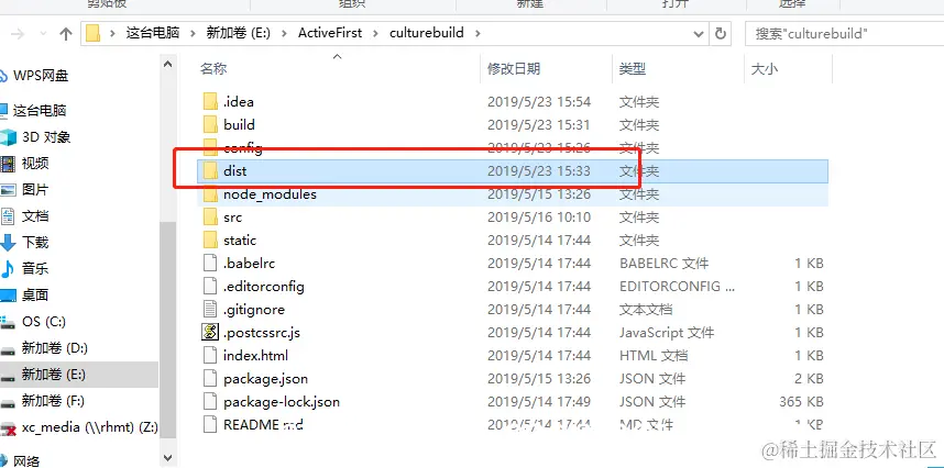 3:vue打包:当前目录下运行 npm run build。完成之后会生成一个dist文件。里面包含了static 和index.html