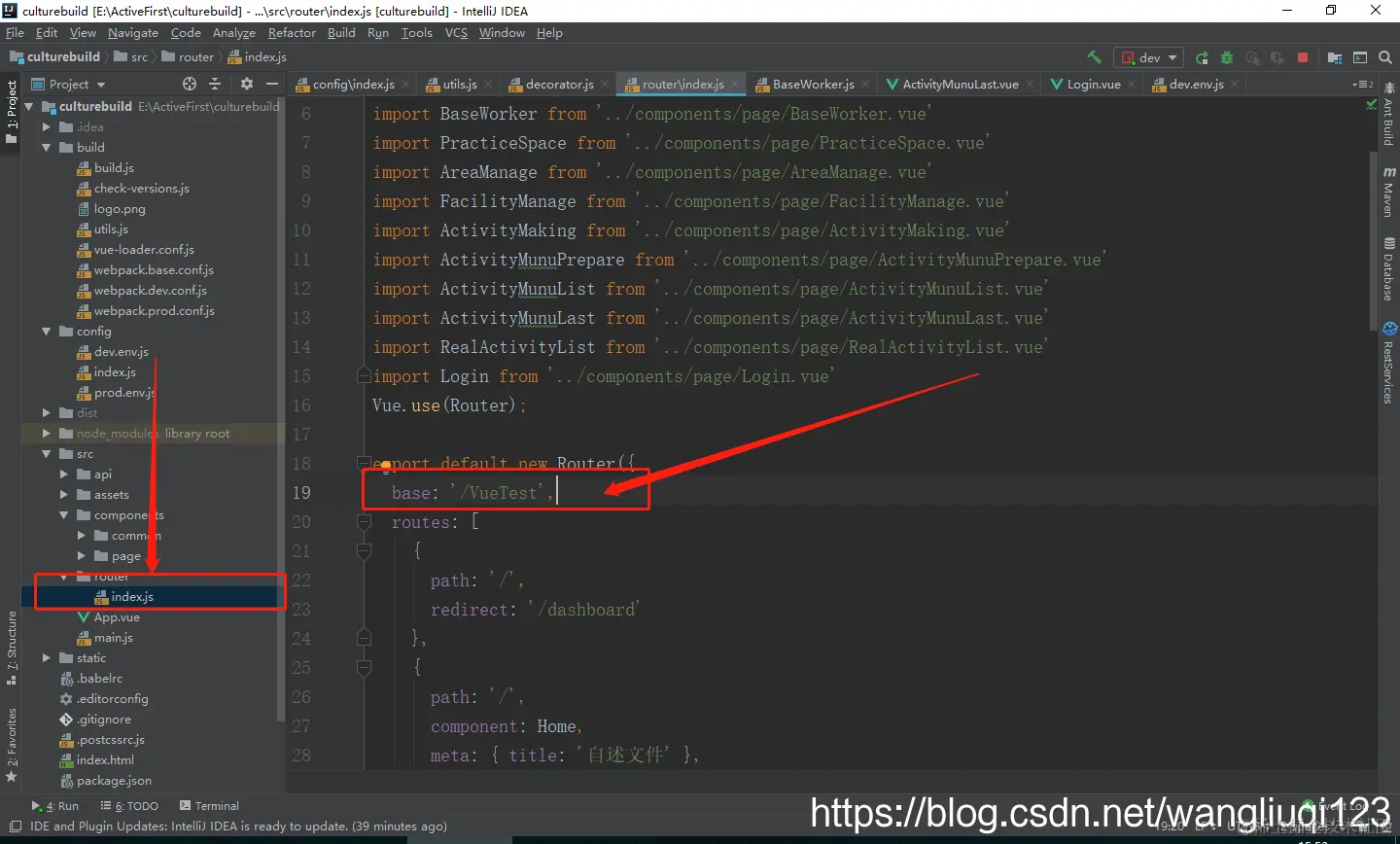 配置路由文件:新加base属性,这个跟你即将放在tomcat里面的项目名保持一致: