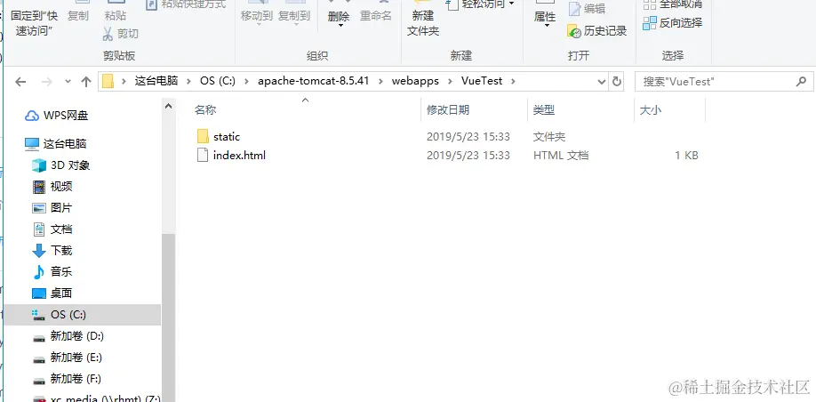 vue 部署到tomcat,需要打包,这里有个注意点:打包完成后的dist文件夹里面的static 和index.html才是我们需要的资源。