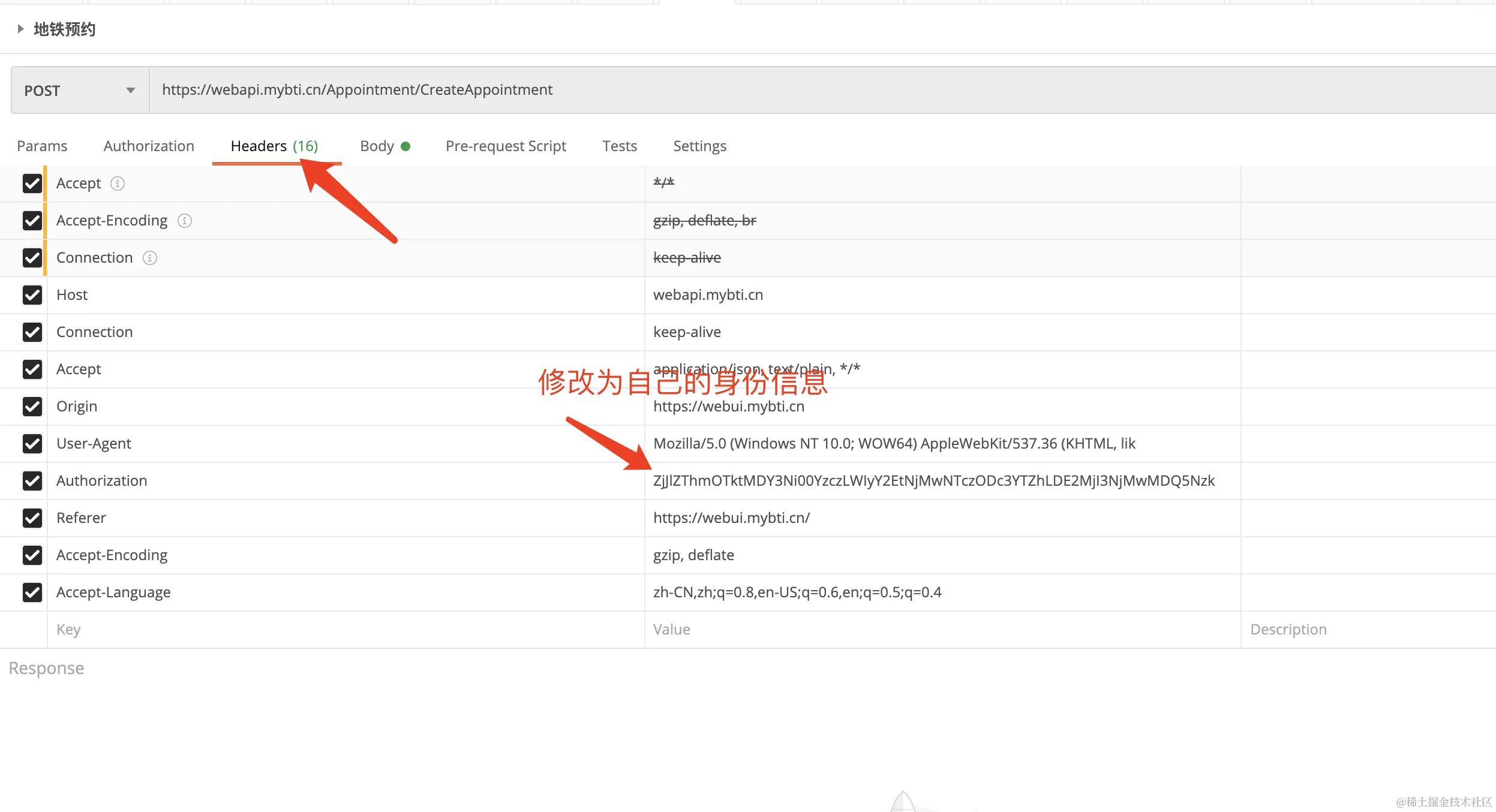 每个人的身份信息不同,这里需要修改为个人的身份信息。