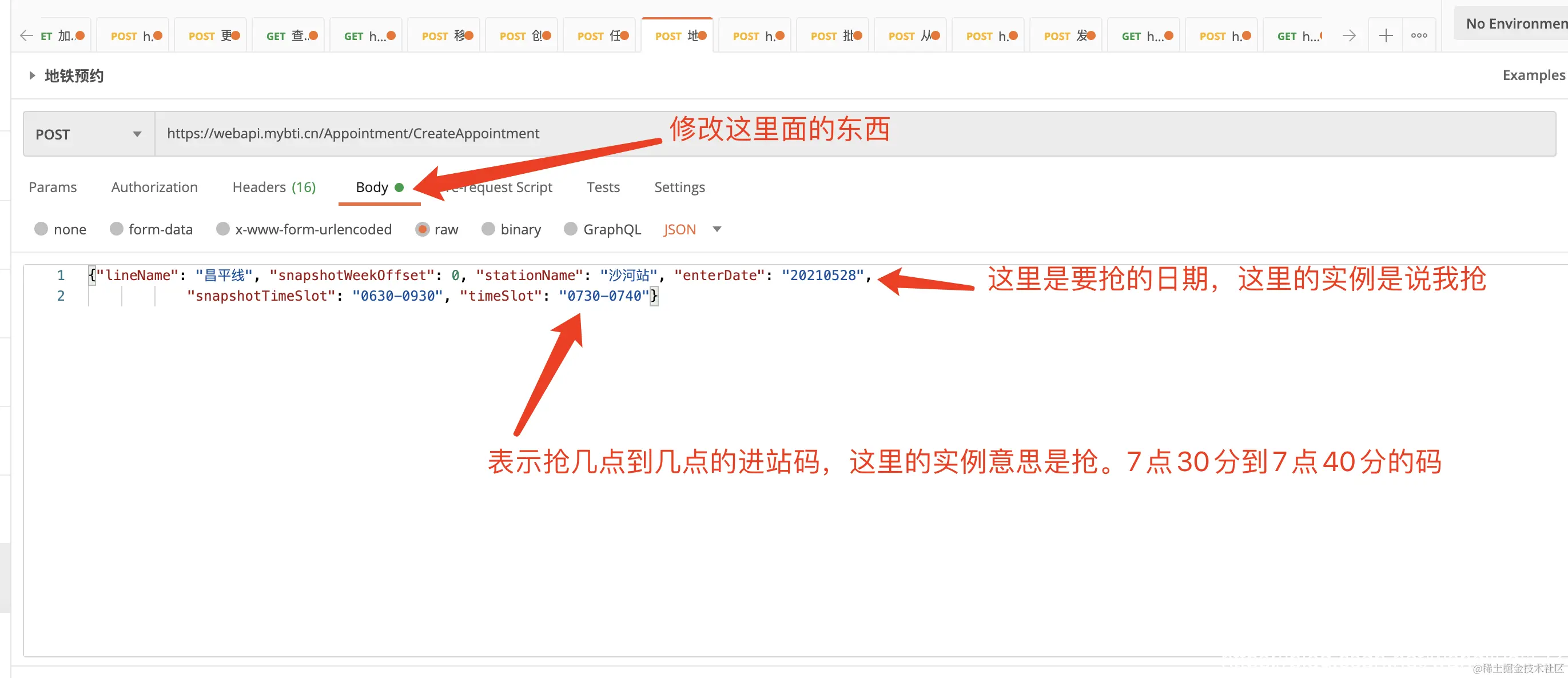 修改postman中的Body。只需要修改两个地方即可。