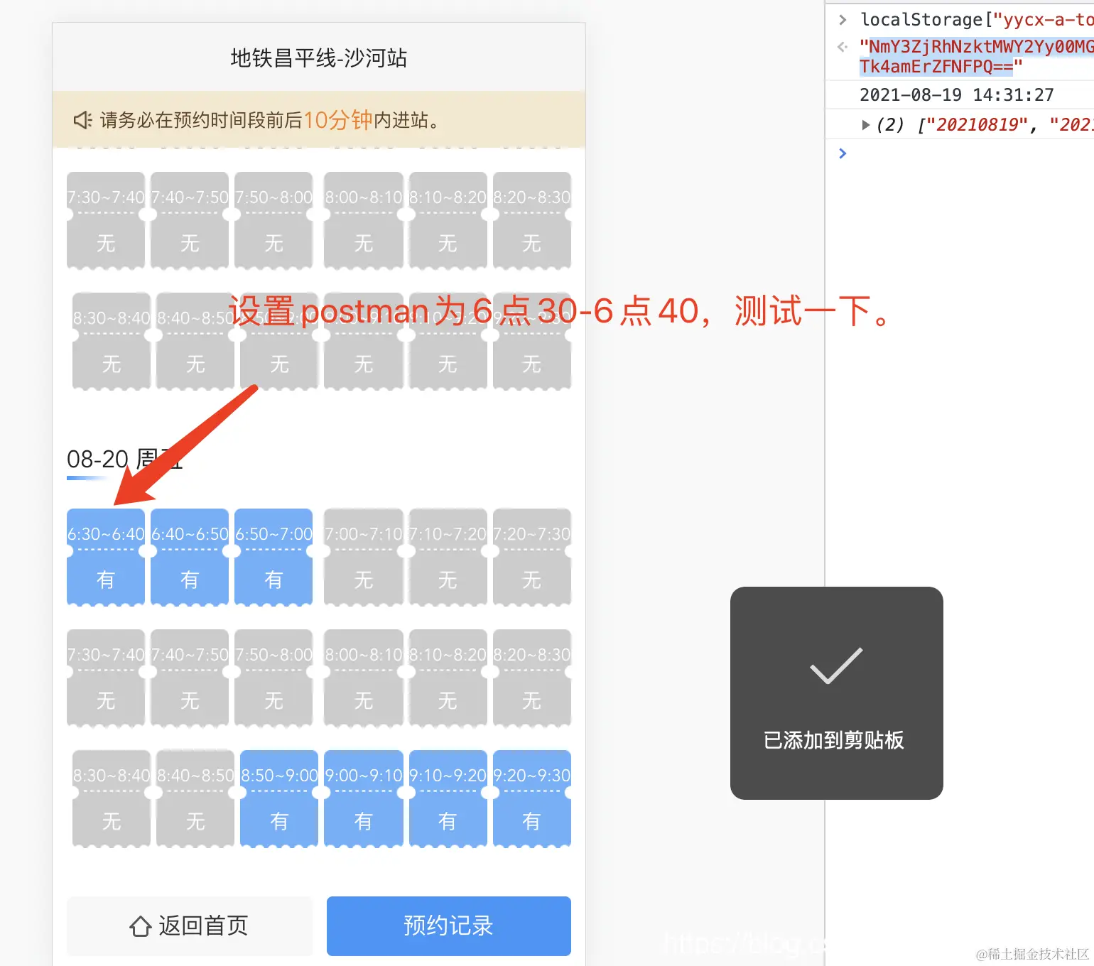如上图。表示抢2021年5月28号早上7点半到7点40的进站码 。一般都是提前一天抢第二天的,所以注意自己的日期设置,不要设置错了。