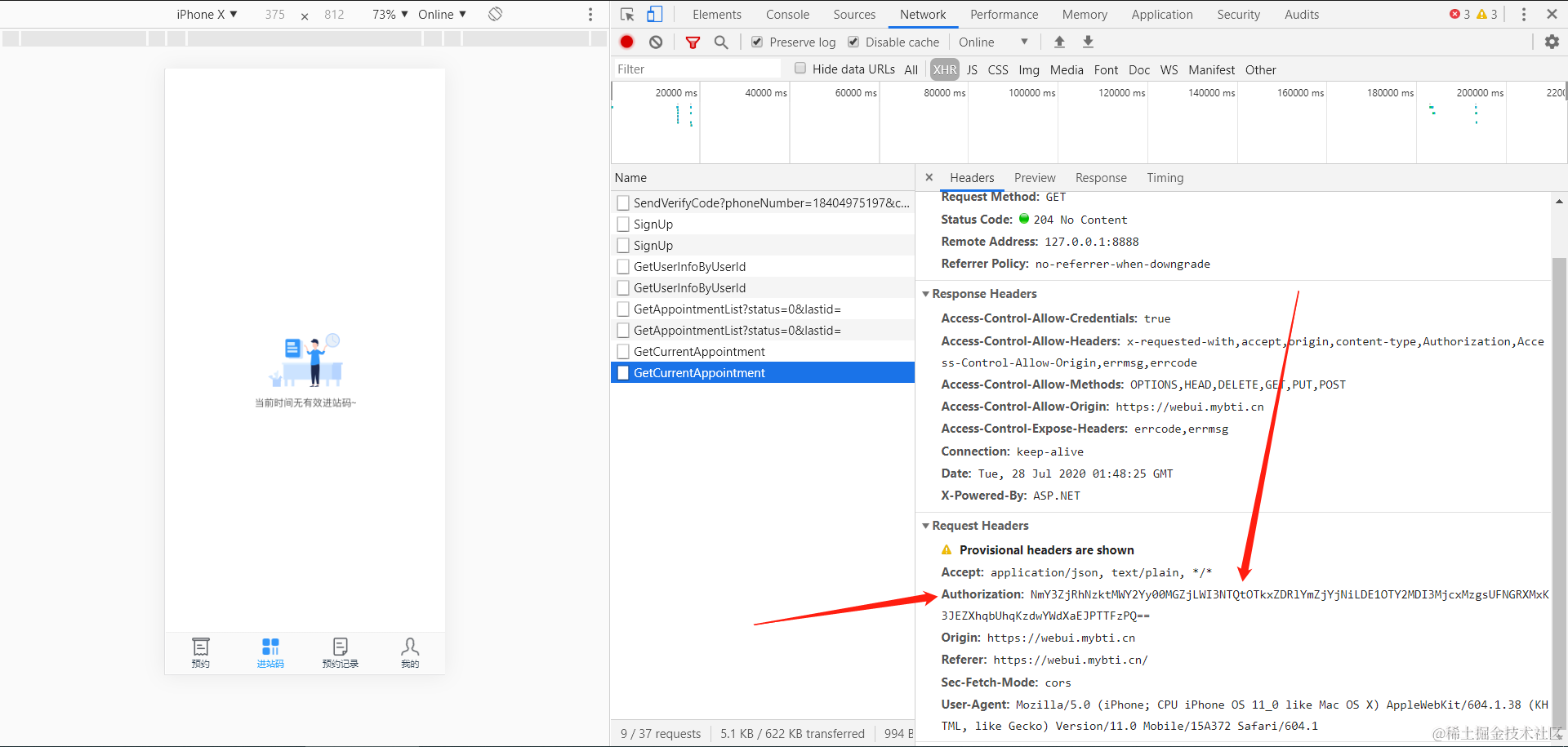 通过Fiddler查看接口很不方便。通过测试找到了预约进站的入口HTML首页