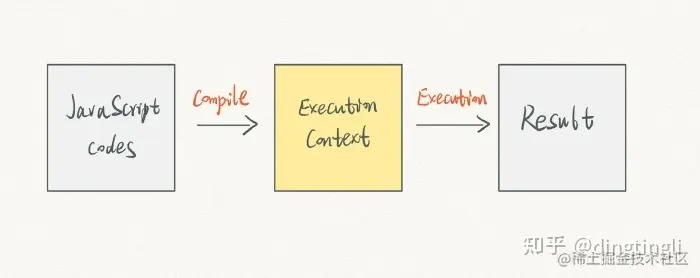 当一段 JavaScript 代码被调用运行时,会遇到两个阶段:编译和执行。