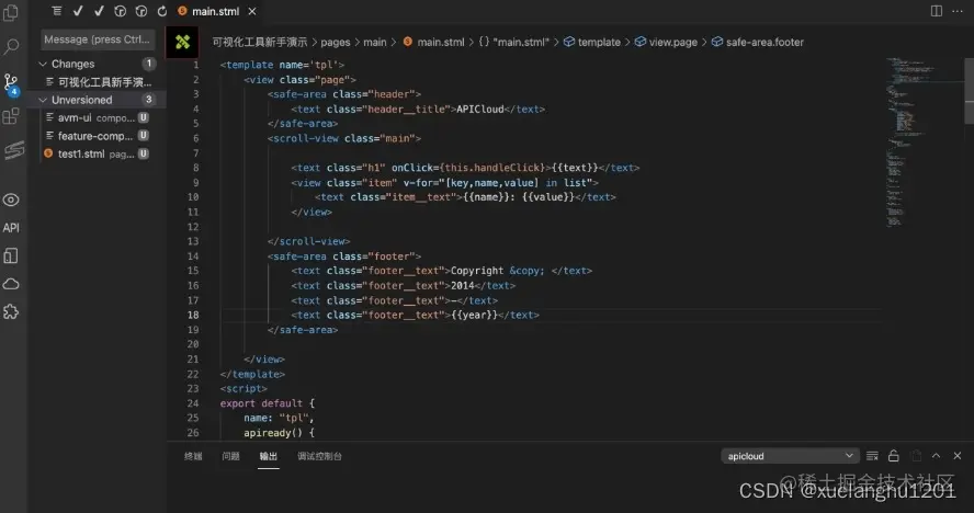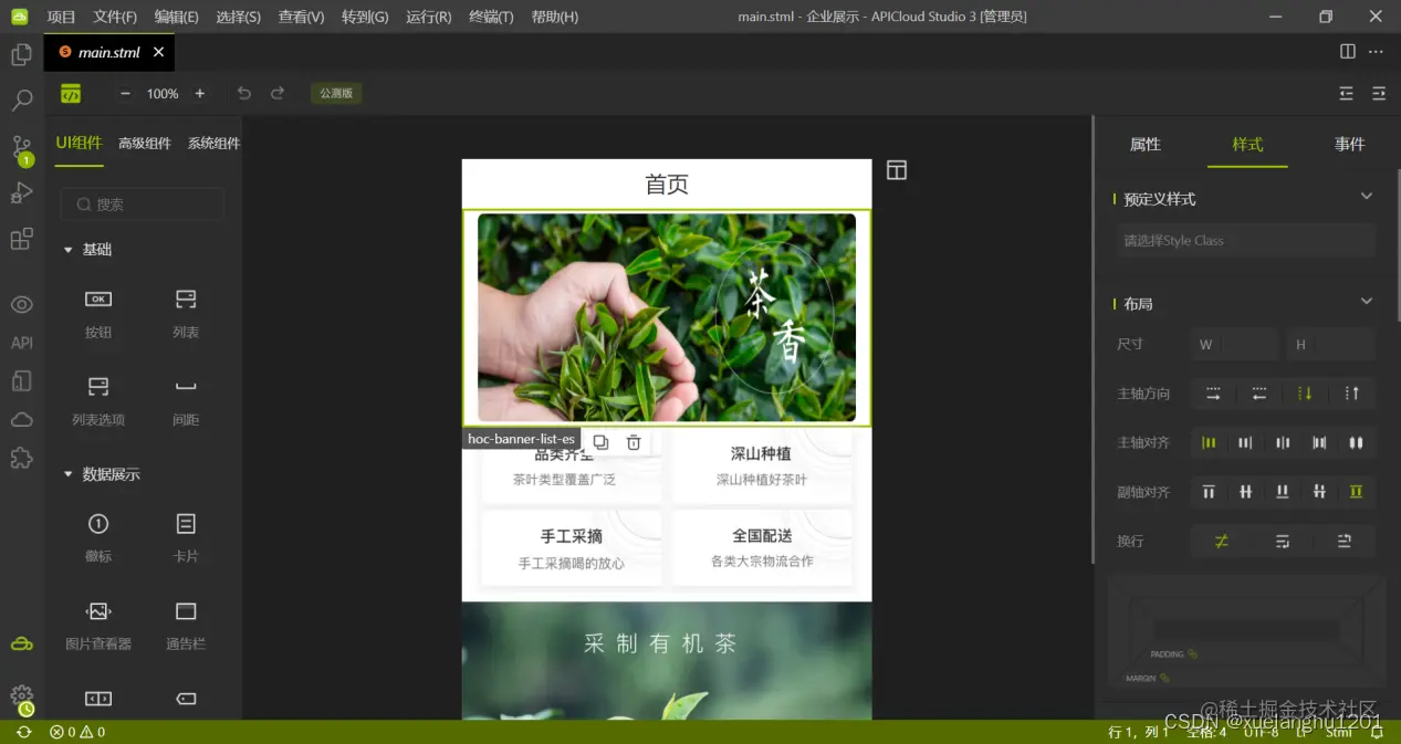 选择pages/main/main.stml页面文件,点击左上角的绿色图标,即可进入可视化工具界面。