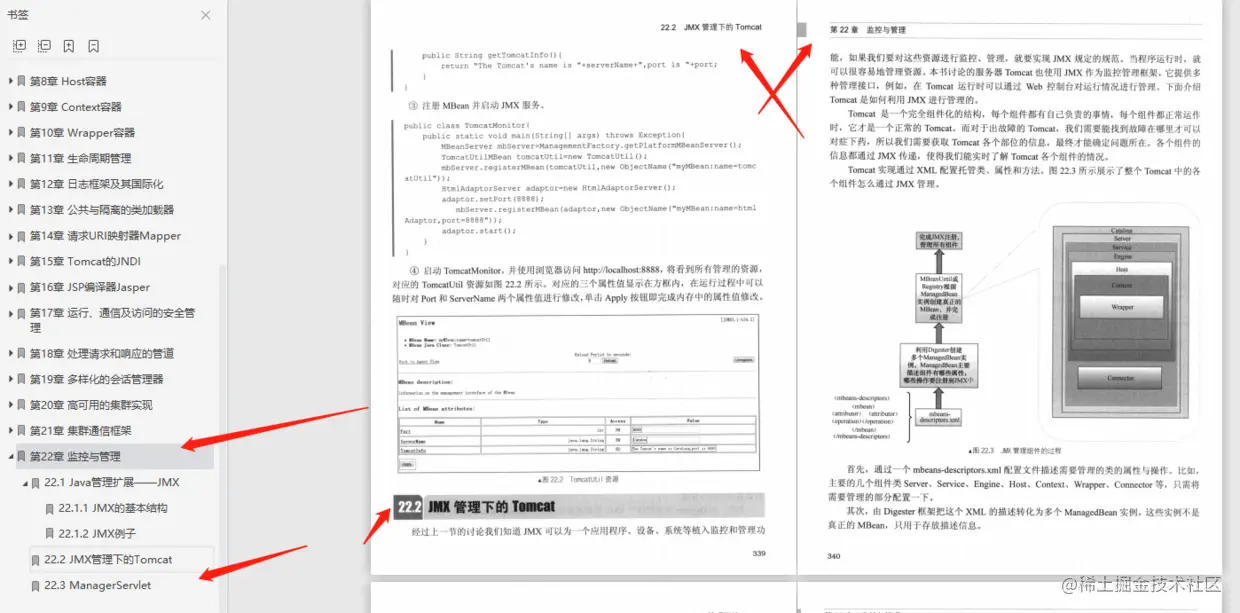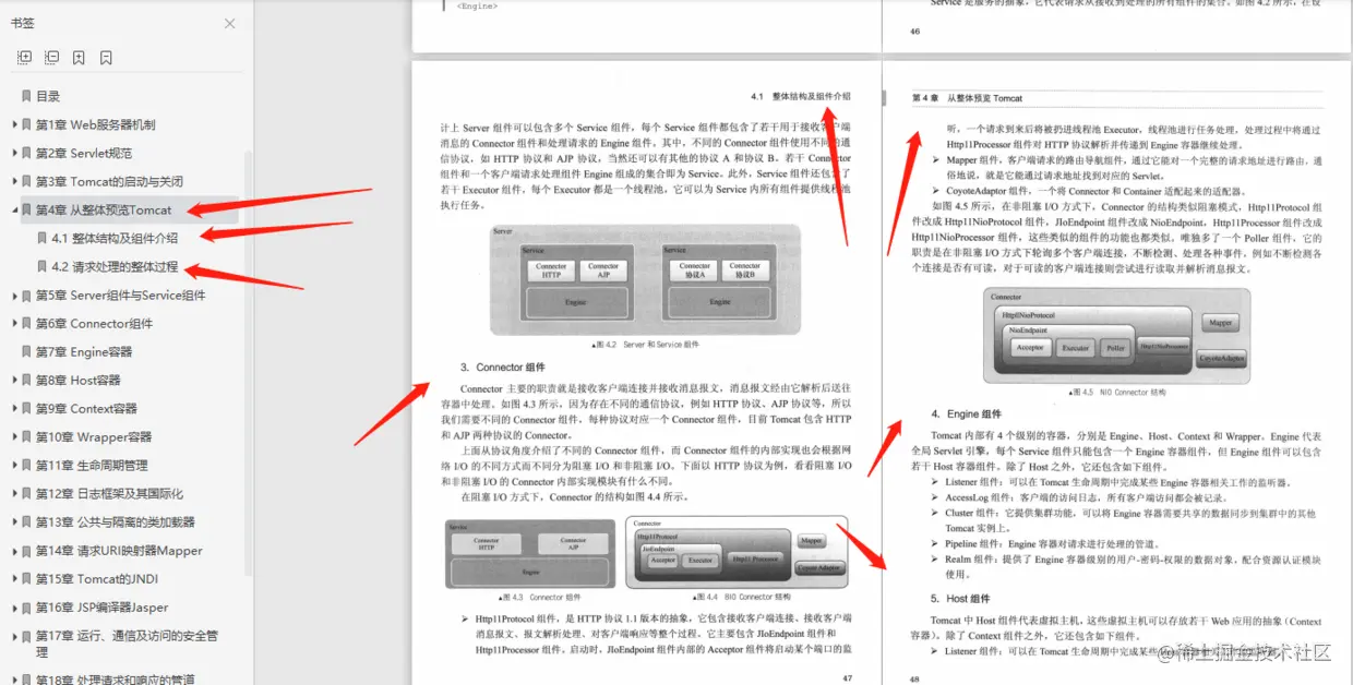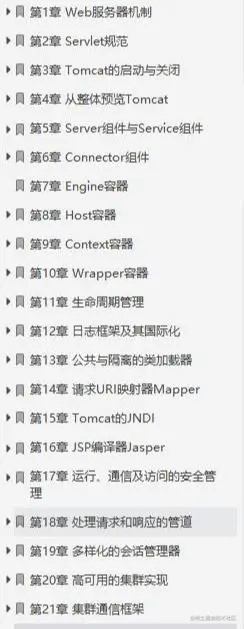 然后介绍了Tomcat的启动与关闭过程,接着从整体预览Tomcat 的内部结构,让读者对Tomcat 内部有个整体的了解。最后开始层层剖析Tomcat内部结构,包括Server组件,Service组件,内存泄漏检测,Connector组件(HTTP 协议、AJP 协议、BIO 模式、NIO模式和APR模式),Engine 容器,Host 容器,Context 容器,.Wrapper 容器(Servlet 种类机制、Comet 模式、WebSocket 协议、异步Servlet),生命周期管理,日志框架及其国际化(日志系统、日志国际化及访问日志),公共与隔离的加载器(多个Web应用如何做到资源隔离),Mapper 组件(局部路由、全局路由),Tomeat 集成JNDI, JSP 编译器(JSP语法解析、JSP编译成Servlet、 Servlet 编译成Class),运行及通信的安全管理,处理请求和响 应的管道(管道机制),多样化的会话管理器(标准会话管理器、持久化会话管理器、集群增量会话管理器及集群备份管理器),高可用的Tomcat集群的实现( 从单机到集群)+XXX_WWW666666获取Tomcat 集群通信框架,Tomcat内部监控与管理。