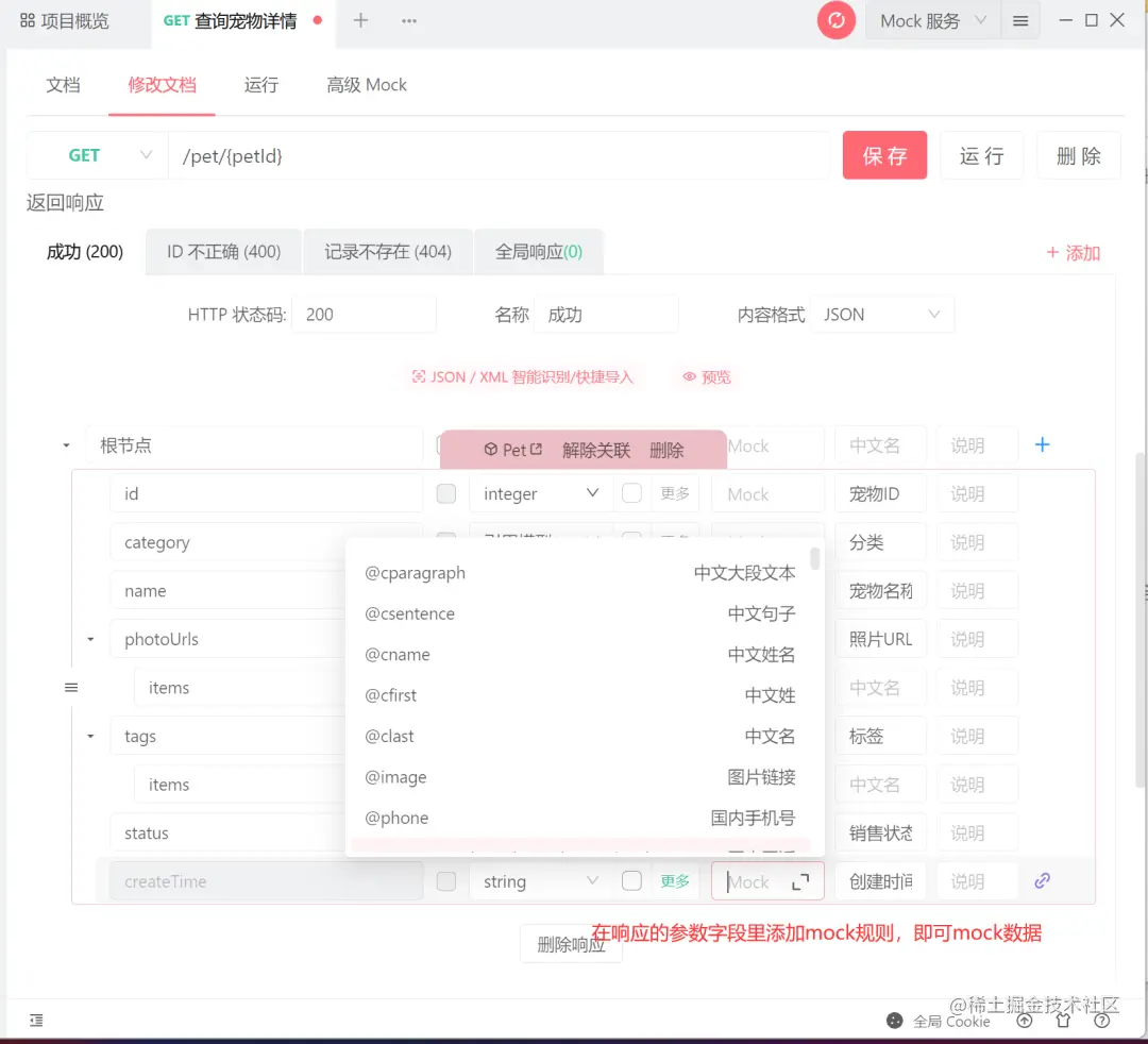 在响应参数中选择合适的mock规则