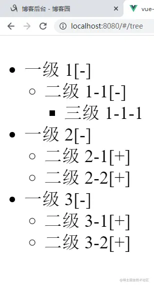 运行效果如下,点击 + / - 号按钮可以实现展开和收起: