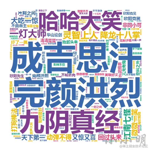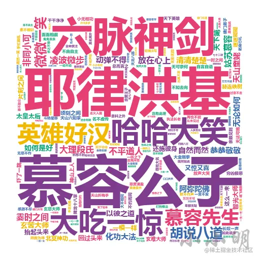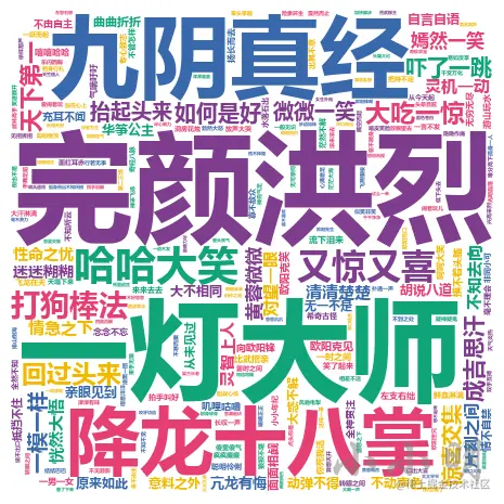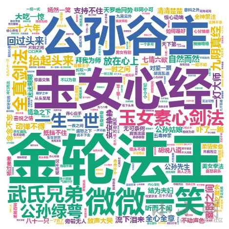 可以看到,比较少的黄色部分明显是主角比较厉害的武功,而绿色比较多的部分基本都是配角的武功。