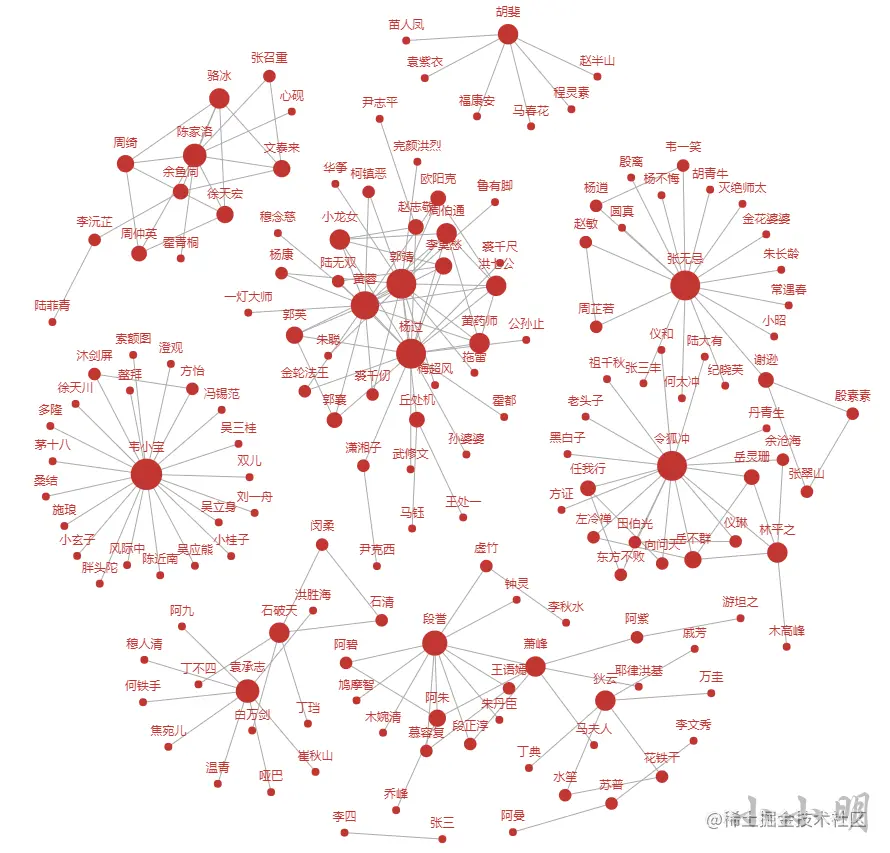 然后我们可以得到金庸小说宇宙的人物层次关系地图,结果较长仅展示一部分结果: