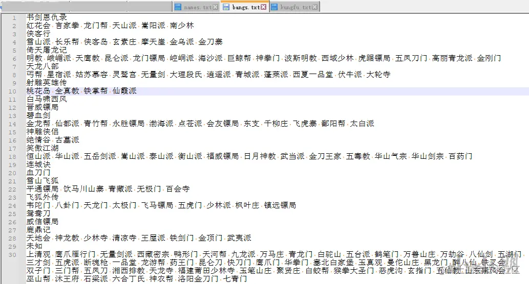 比较少的这一类,基本都是在某几部小说中出现的主要门派,而大多数门派都是打酱油的。